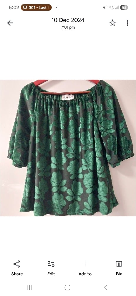 Textured flock velvet relaxed fit top with elastic neckline and elbow length sleeves