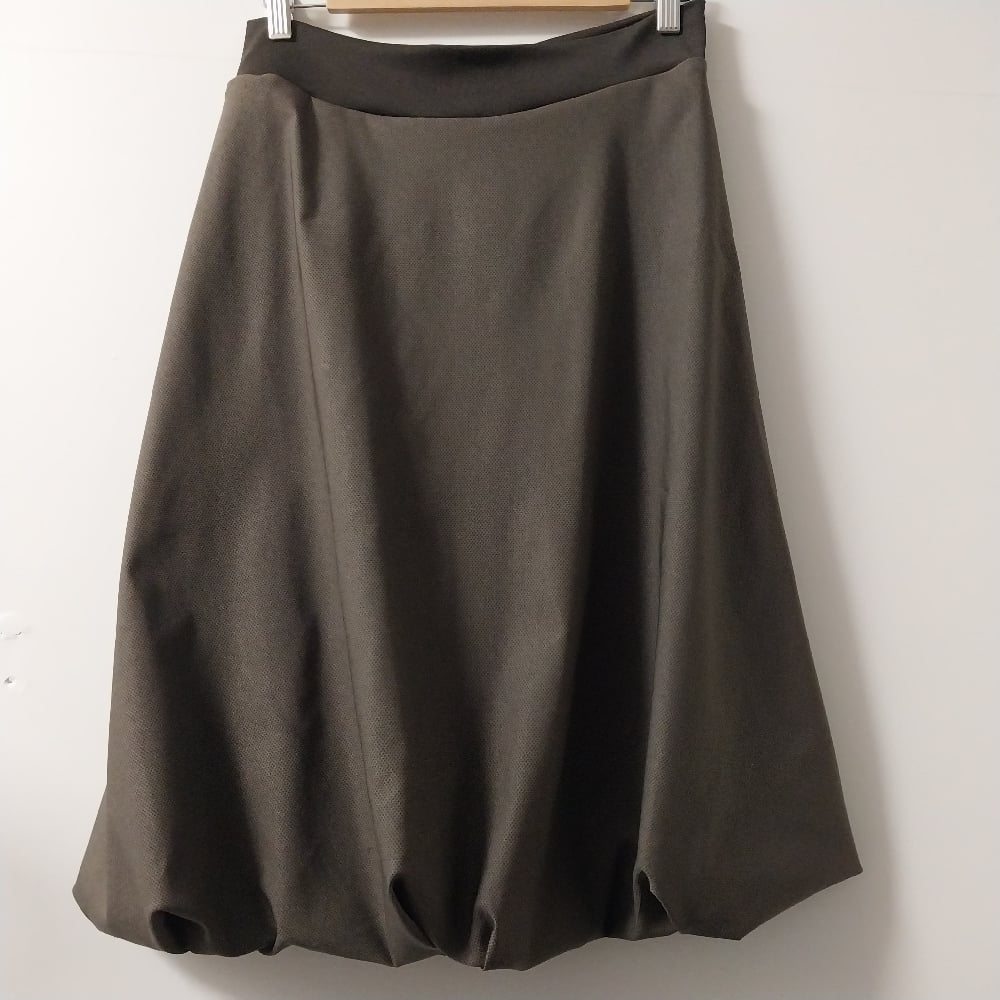 Full a-line skirt with inverse tucked hem and suprise contrast stretch lining.
